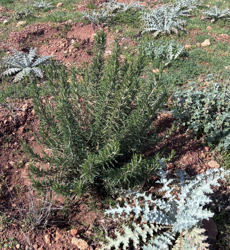 Planta de romero (Salvia rosmarinus) en su segundo año de crecimiento.