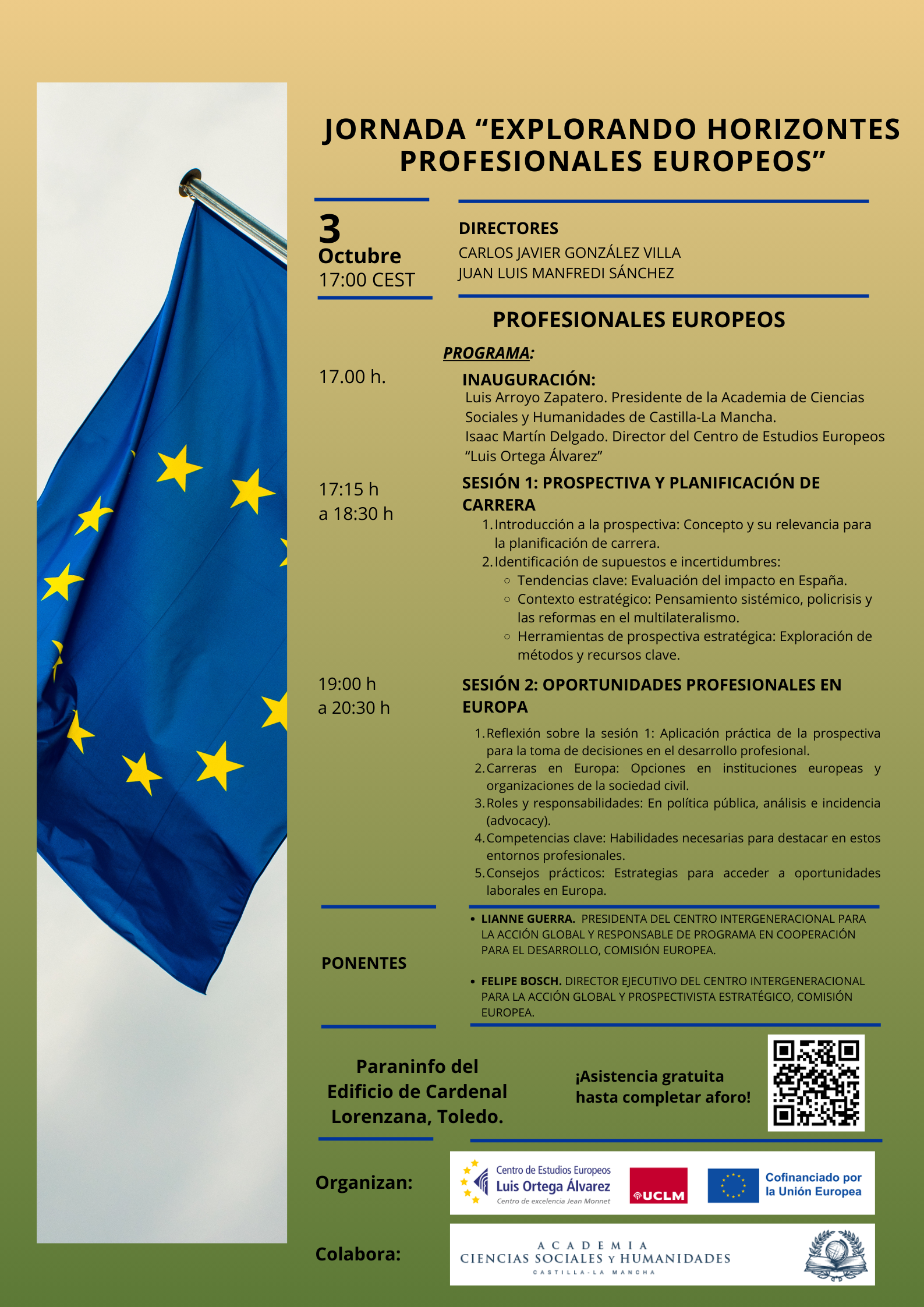 El pasado 3 de octubre tuvo lugar la jornada de "Explorando Horizontes Profesionales Europeos" en el Paraninfo del Edificio Cardenal Lorenzana de Toledo.